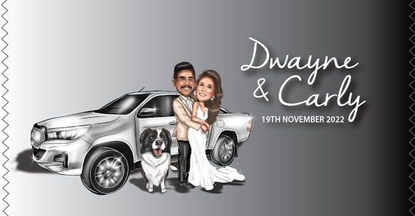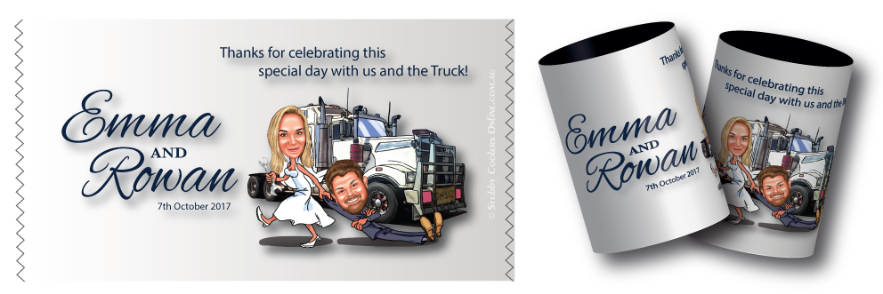 Stubby Coolers Online has a brilliant caricature artist available to turn your ideas through the use of your pictures and ideas into a cartoon like caricature design for your stubby holders. It is so easy - all we need from you is a few photographs of the people involved with maybe a pic of your favourite car, boat or truck. In fact you can have whatever you like featured in your caricature stubby holder design and all in the colours of your choice.